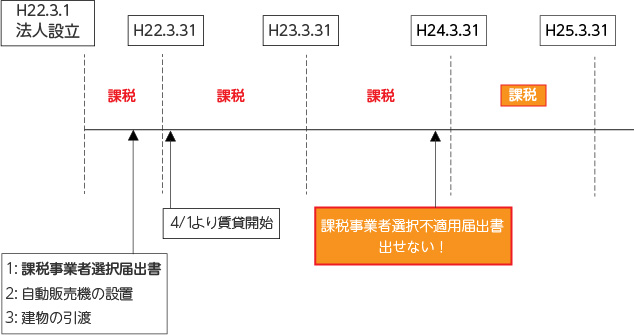 ★先ほどでは、「課税事業者選択不適用届出書」の提出により、免税事業者に戻れた平成25年3月31日期が課税事業者のままになります。